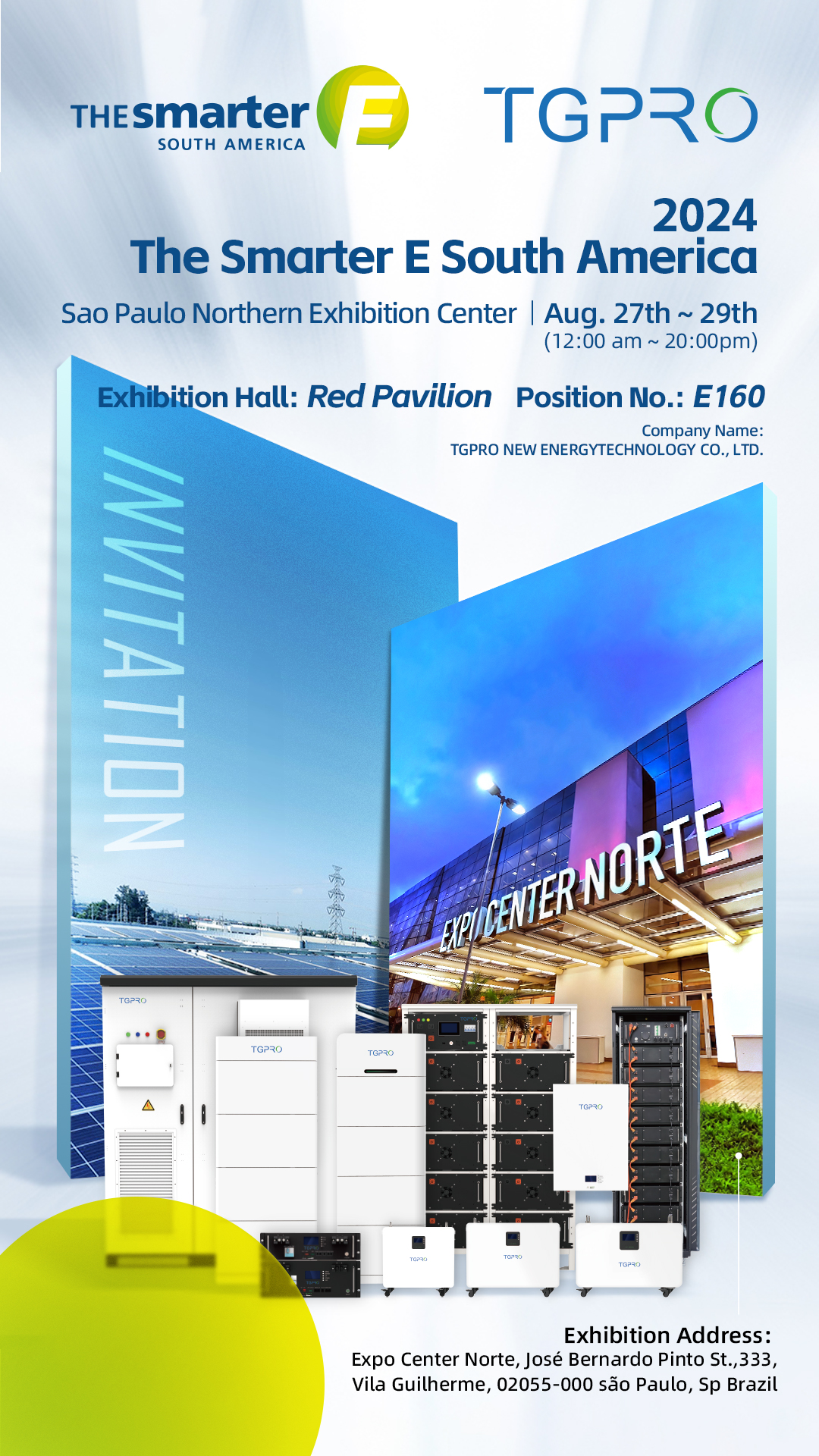 TGpro New Energy cordially invites you to visit the North Exhibition Centre in Sao Paulo, Brazil from 27th to 29th August, 2024, to participate in the South American Intelligent Energy Exhibition.